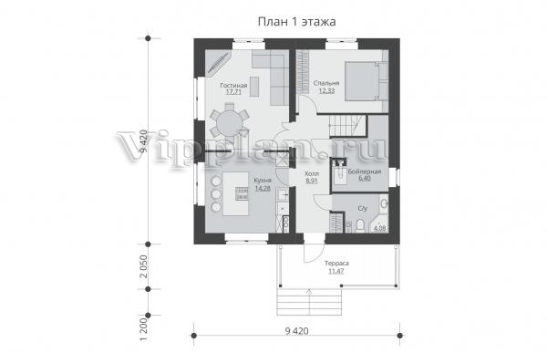 | Размеры дома: | 11.47м×9.42м |