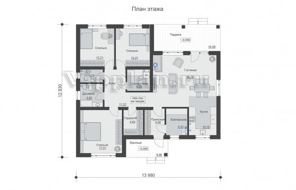 | Размеры дома: | 12.93м×13.98м |